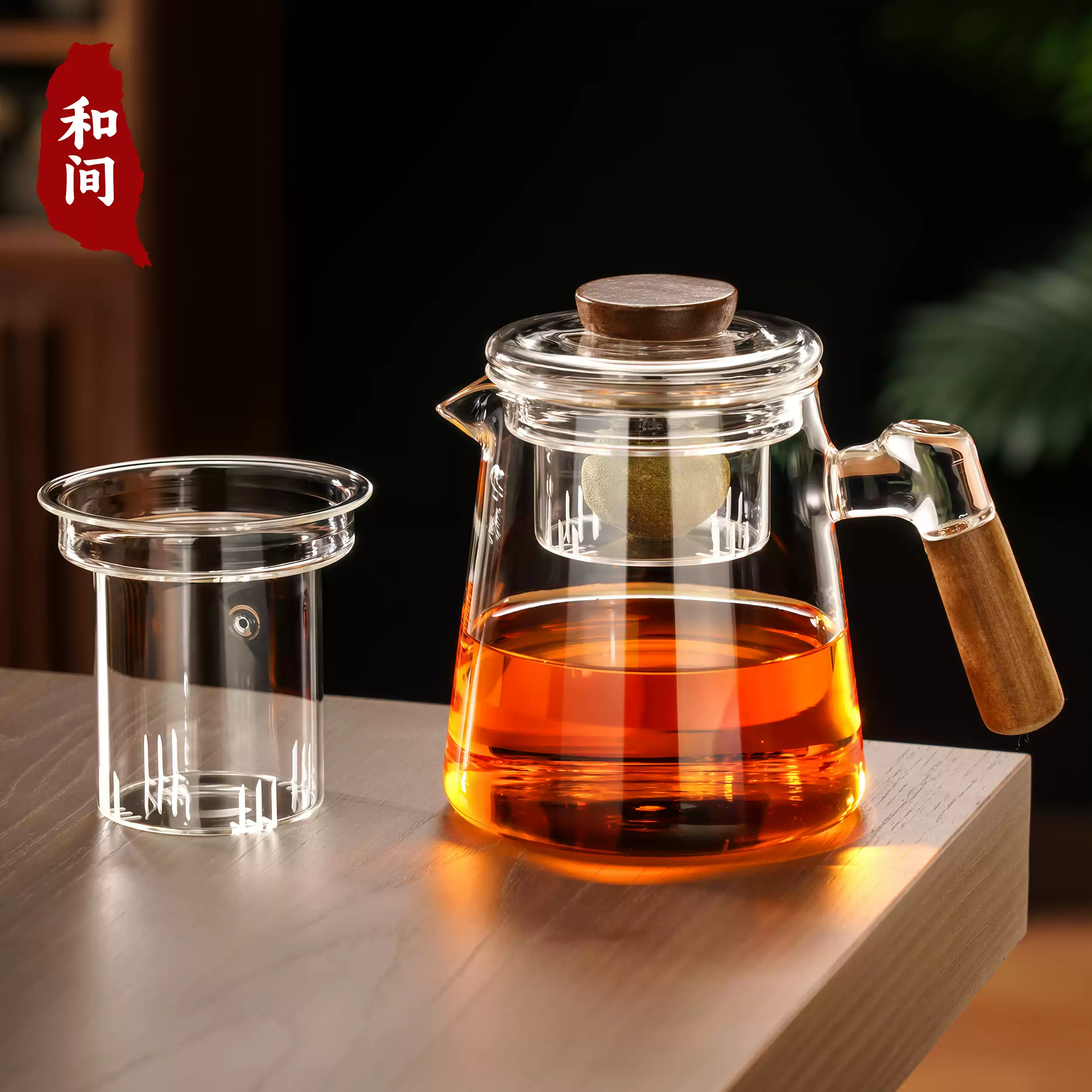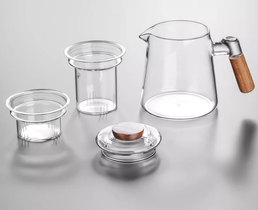 Wooden Lid Glass Tea Kettles Stovetop Borosilitate Glass Filter Teapot With Wooden Handle Tea Pot