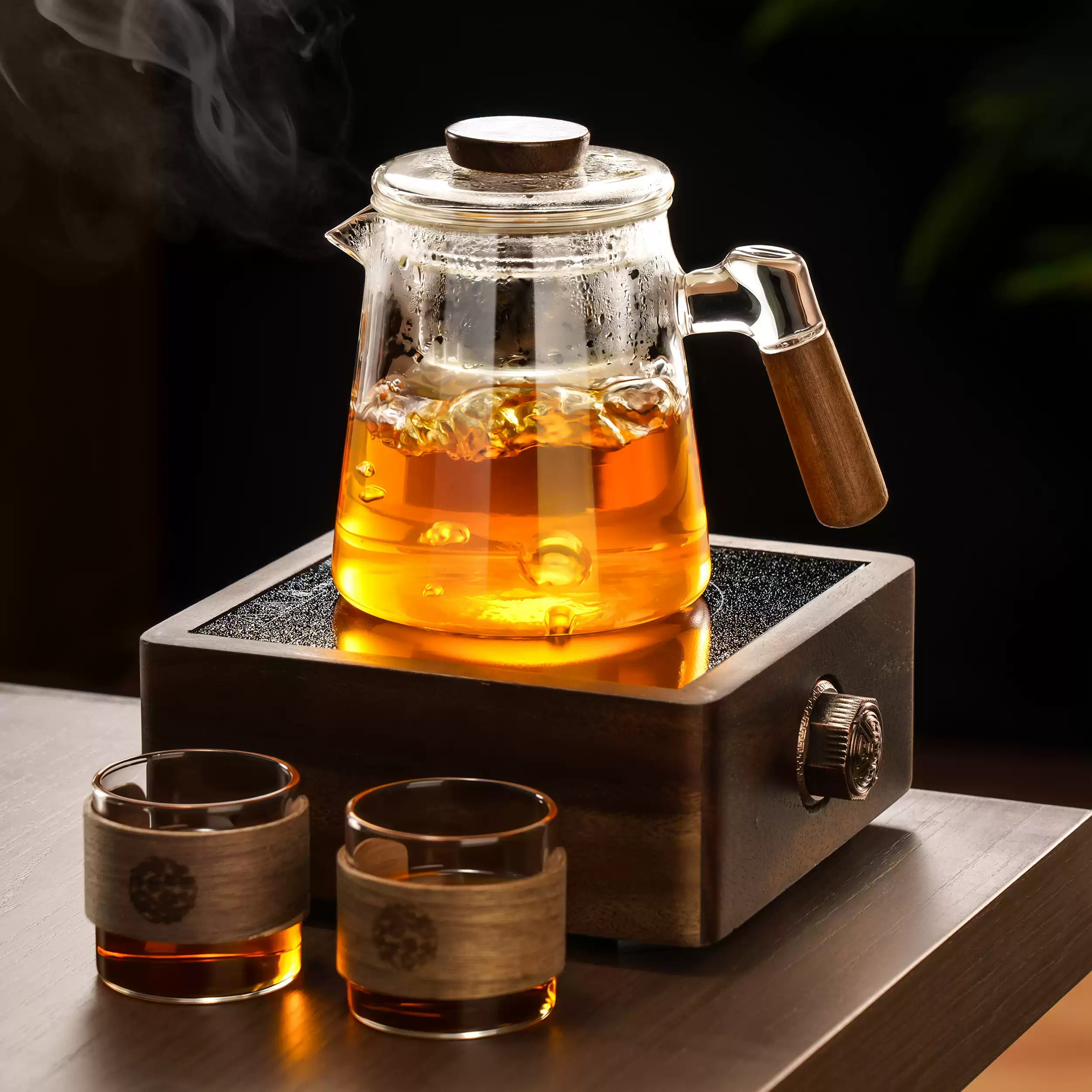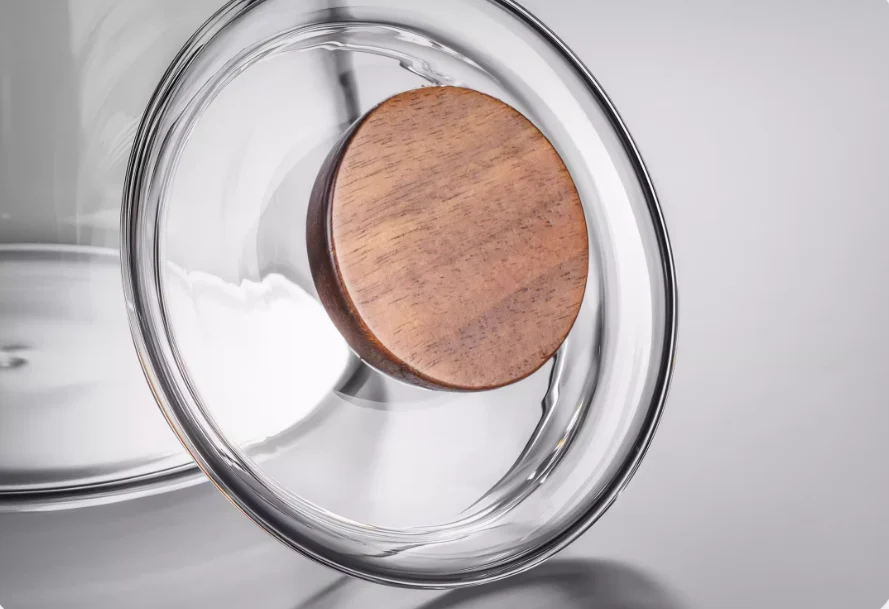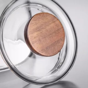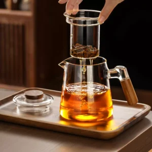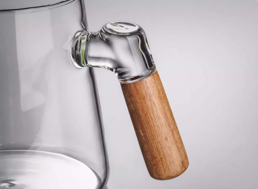 Glass volcano teacup with wooden handle